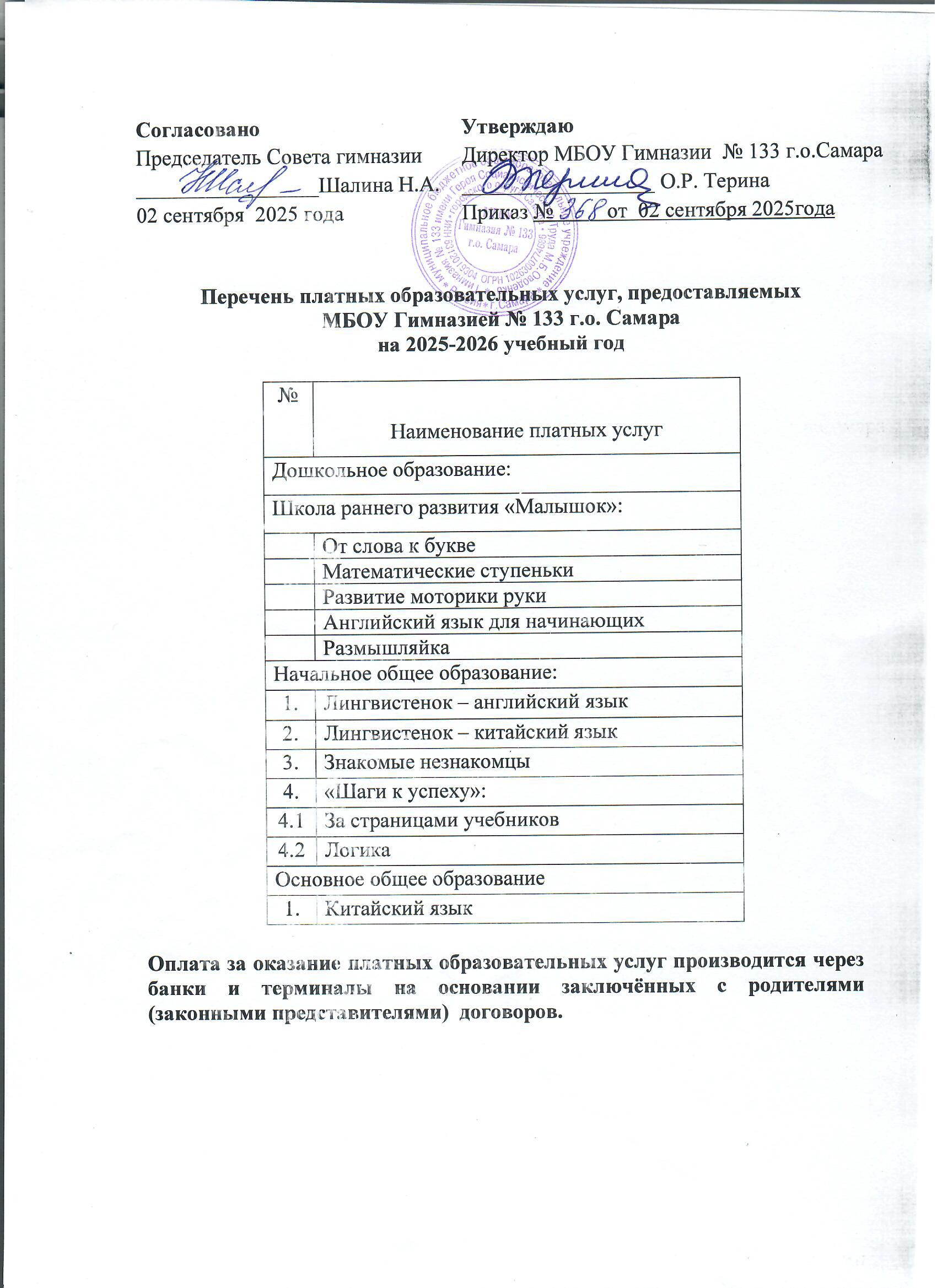 Перечень платных образовательных услуг на 2025 -2026 учебный год